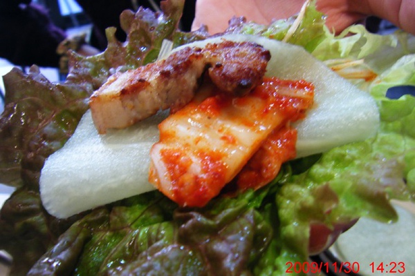 配菜: 生菜/ 醃蘿蔔薄片/ 泡菜/ 蔥絲